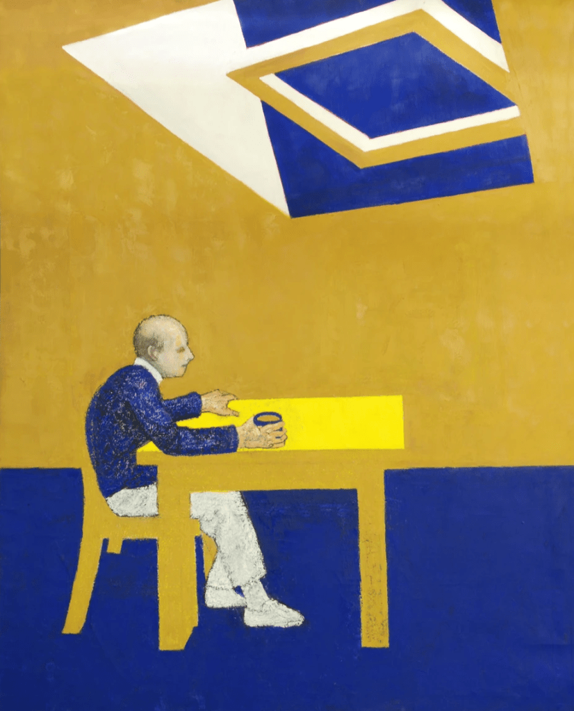 Examinons la série d’autoportraits de William, non comme « les effets d’un cerveau en déclin« , mais comme le témoignage d’un homme conscient de sa transformation. Après son diagnostic, il se peint une dernière fois en couleurs vives – jaune et bleu – mais seul, près d’une fenêtre ouverte, comme si ses souvenirs s’échappaient déjà. Puis, il se représente avec deux crânes, illustrant la dualité entre le présent et l’oubli imminent. Ses portraits suivants montrent des coups de pinceau disparates, la mémoire s’évadant en cours de création. Enfin, la chute : les traits s’estompent progressivement, les éléments du visage perdent leur cohérence, jusqu’à ce qu’il ne reste presque plus rien sur la toile. Cette progression illustre non seulement son expérience personnelle, mais reflète aussi l’effacement social que subissent les personnes atteintes de maladies neurodégénératives, ce qui contribue à la difficulté de faire respecter leurs droits fondamentaux. Face à ce constat, il apparaît crucial d’agir à plusieurs niveaux : d’une part, en développant une conscience internationale plus forte et en renforçant les textes et conventions qui en découlent, et d’autre part, en œuvrant pour une transformation profonde de nos pratiques de soin envers ces personnes vulnérables.