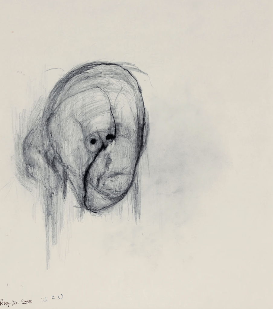 1990. Dans son atelier londonien, William Utermohlen achève son ultime cycle artistique, Conversations. Pourtant, depuis quelques mois, une angoisse plane sur cette réalisation et lui ronge l’esprit. Les mots lui échappent, ses pensées s’égarent, et le quotidien devient un labyrinthe où ses repères s’estompent. Cinq ans plus tard, le diagnostic tombe : il est atteint de la maladie d’Alzheimer. Sans le vouloir, William est progressivement devenu une référence artistique emblématique des ouvrages neurologiques, réduit malgré lui à un simple sujet d’étude scientifique et confiné aux pages des ouvrages médicaux. Les rares expositions posthumes qui lui ont été consacrées gravitent invariablement autour des thèmes de la « mémoire » ou du « trauma« . En effet, son neuropsychologue Sebastian Crutch publie en 2001 une étude novatrice sur l’évolution artistique d’un patient atteint d’Alzheimer (The Lancet), s’appuyant sur la série d’autoportraits réalisés par William après son diagnostic. Crutch y observe que « la détérioration objective de la qualité des œuvres produites […] est un témoignage de la résilience de la créativité humaine. » En écho à cette analyse, Andrew Purcell affirme une décennie plus tard que « le dévouement d’Utermohlen à son art offre aux spectateurs contemporains un aperçu unique des effets d’un cerveau en déclin. »