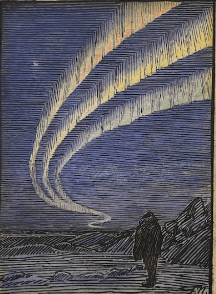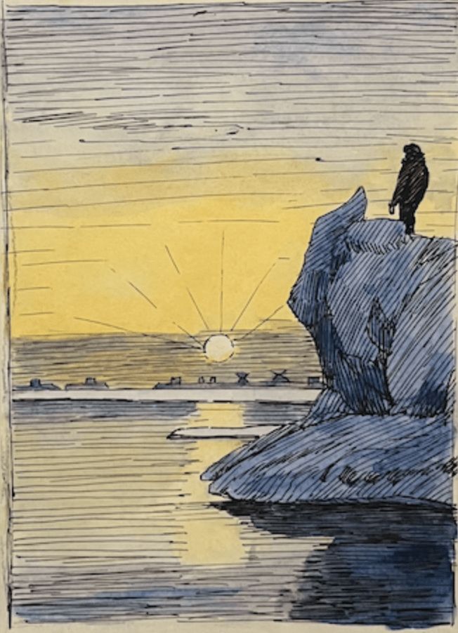 Ce visage méconnu de Fridtjof Nansen m’est apparu lors d’un voyage à Oslo, au détour d’une visite au Musée du Fram. Au milieu des récits de la rivalité entre Robert Falcon Scott et Roald Amundsen et du sort tragique des chiens de traîneau, mon regard fut attiré par des dessins et photographies signés Nansen. Une recherche plus approfondie révéla la facette artistique de ce philanthrope norvégien, démontrant que l’art peut se mettre au service de la défense des droits humains. Au-delà de ses expéditions polaires au Groenland et en Arctique, de l’invention de la bouteille Nansen, du passeport Nansen ou encore de la fondation de l’Institut Polaire norvégien, son œuvre artistique mérite une reconnaissance plus large. En effet, ses créations visuelles restent l’un des témoignages les plus tangibles de l’humanitaire qu’il fut. Parce que Majuscule se consacre aux droits humains, je joins ici quelques dessins au crayon et au pastel réalisés par Fridtjof Nansen lors de son expédition au Pôle Nord (1893-1896). Il a également capturé un grand nombre de clichés de cette expédition, que vous pouvez retrouver sur ce site. Ces dessins précèdent une exploration plus approfondie de ses photographies emblématiques documentant la famine russe.