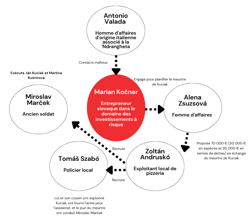 Ján Kuciak était dans le collimateur de la mafia italienne opérant en Slovaquie en raison de son travail d’investigation sur les « allégations de fraude fiscale, de corruption et de clientélisme dans l’utilisation des fonds de l’UE, ainsi que les liens entre les oligarques et les dirigeants politiques. » Plus précisément, Ján Kuciak s’intéressait à la ‘Ndrangheta, une célèbre organisation mafieuse basée en Calabre (Italie), qui domine le marché européen de la cocaïne. Global Initiative explique qu’il enquêtait sur les liens entre ce groupe criminel, Robert Fico, alors Premier ministre, et sa secrétaire Mária Trošková, associée d’un Italien basé en Slovaquie et directement lié à la ‘Ndrangheta. En possession de telles découvertes compromettantes pour plusieurs hommes d’affaires et figures politiques slovaques, Ján Kuciak était devenu une menace, un lanceur d’alerte à museler.